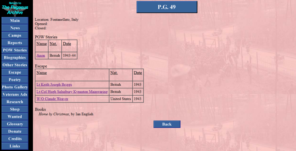 After a random Google search on PG 49 had unearthed an anonymous story entitled ANON, I noticed that there were 3 other POW stories listed under the PG 49 link on the Italian POW page that had been created by Mark Hickman.