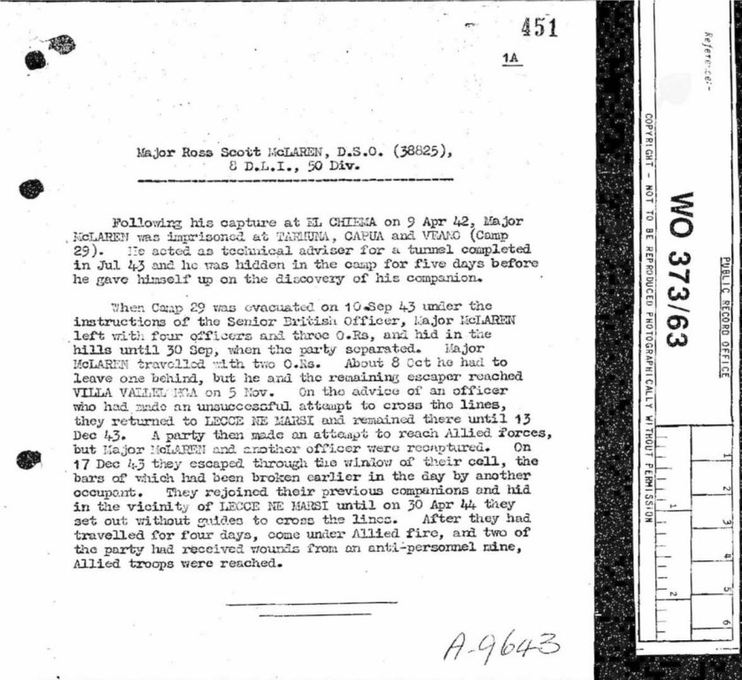 Whilst trying to establish if McLaren and Preacher had also been in PG 49 at Fontanellato I came across a fabulous photo on WW2Talk of the 8th Battalion of the Durham Light Infantry published by The Tatler on 5th March 1941 which identified Major R.S. McLaren.