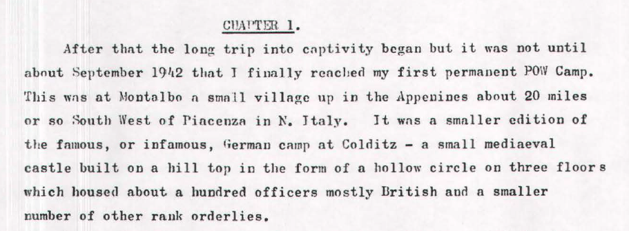 And so for John the war is over and he finds himself transported from North Africa to Italy ending up at his first ‘permanent’ POW camp at PG 41 at Montalbo.