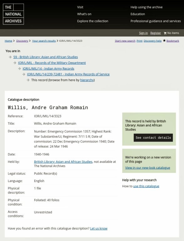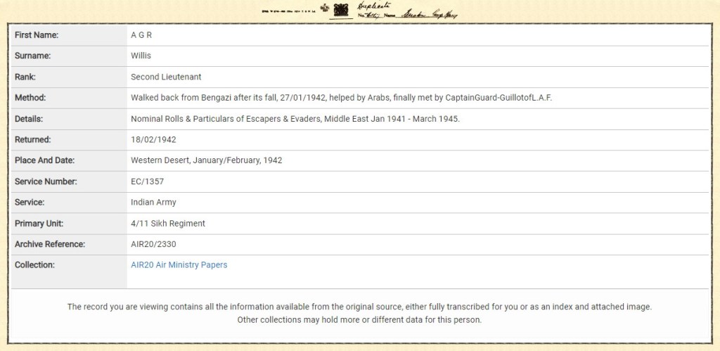 My father, Andre Graham Romain WILLIS, was a 2nd Lieutenant with the 11th Sikh Regiment of the Indian Army and taken prisoner of war during the Desert Campaign in North Africa and held in Prigione di Guerra (PG 49) Fontanellato during the Second World War.
