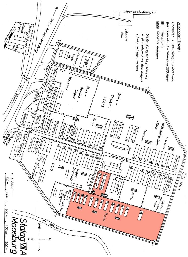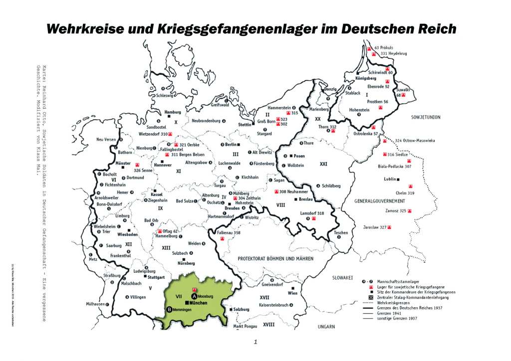 Stalag VII A in Moosburg was one of the largest German POW camps during World War II. More than 150,000 prisoners were registered there from 1939-45 and deployed in work commands in Wehrkreis VII (southern Bavaria).