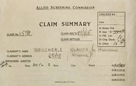 Above is a screenshot of the only “Claim Summary” I have seen thus far that is attributed to Iolanda Baccherle that I came across recently in a wonderfully evocative post submitted by Germana Canzi about her Great Aunt, entitled “My great aunt Iolanda, the unlikely Italian Resistance hero“.