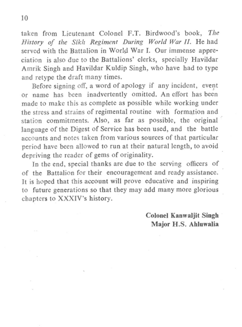 How lucky was that. And it turns out to be the very same pages that I have managed to obtain from Colonel F.T. Birdwoods book on “The Sikh Regiment – In the Second World War“. And the book appears to acknowledge the fact in its Preface.