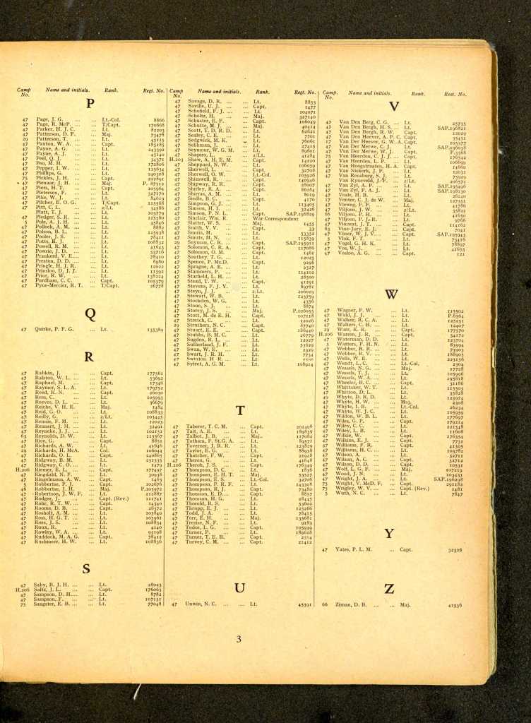 | No. | Name | Initials | Officer | Pers. No. | Regt. or Corps. |