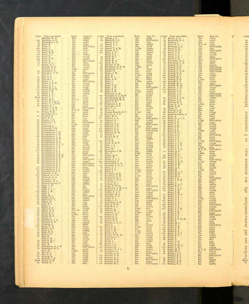 | 5 | Eloff | T.S. | Pte. | 198030 | |