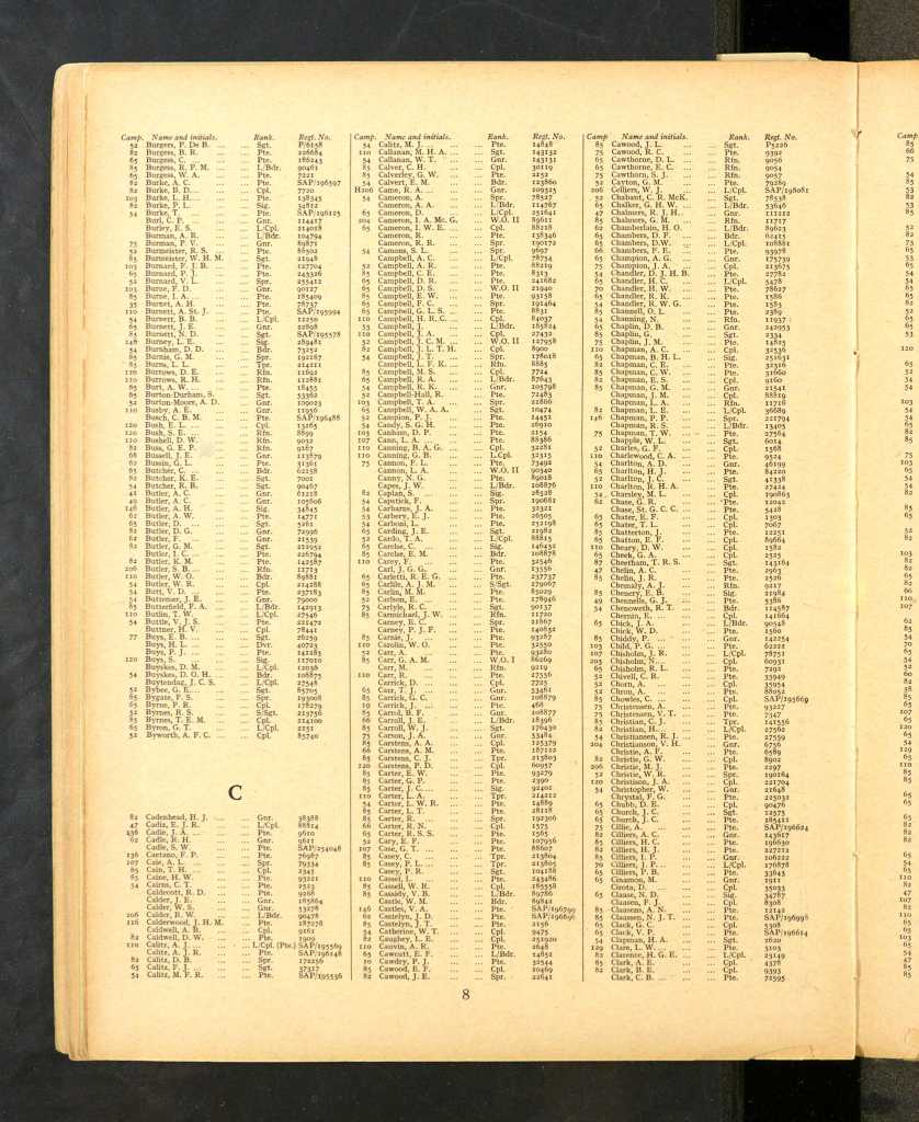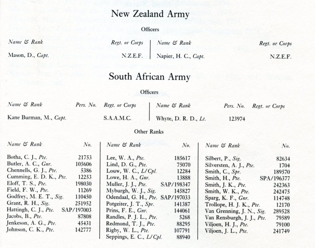 | No. | Name | Initials | Other Rank | Pers. No. | Regt. or Corps. |