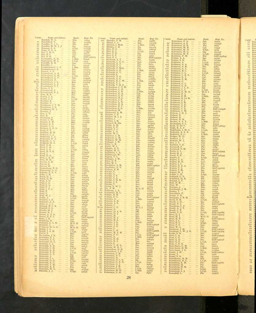| 22 | Randles | P.J.L. (Paul John Leonard) | Pte. | 5268 | Umvoti Mounted Rifles |