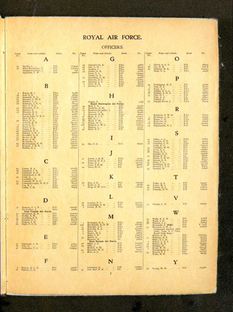 | 12 | Packington | R.E. | F/O | 41730 | R.A.F. |